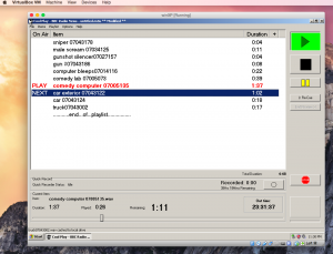 I wrote previously about getting CoolPlay to run on a Mac. CoolPlay is WindowsXP software used for playing audio clips, developed for BBC Radio, but it has other uses too, and I don’t know of any Mac software that does the same thing: to allow you to organise a playlist of audio tracks that play one at a time, stopping at the end of each track and waiting for a button to be pressed before playing the next track.