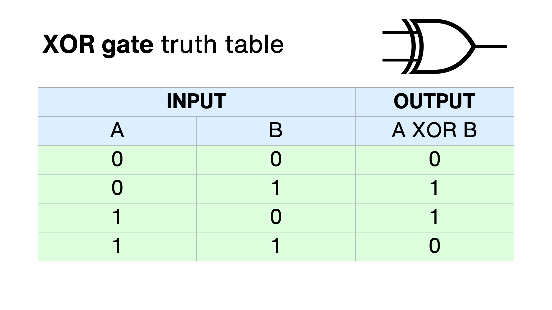 The EXCLUSIVE OR gate gives an output if either input is switched on – but not both.