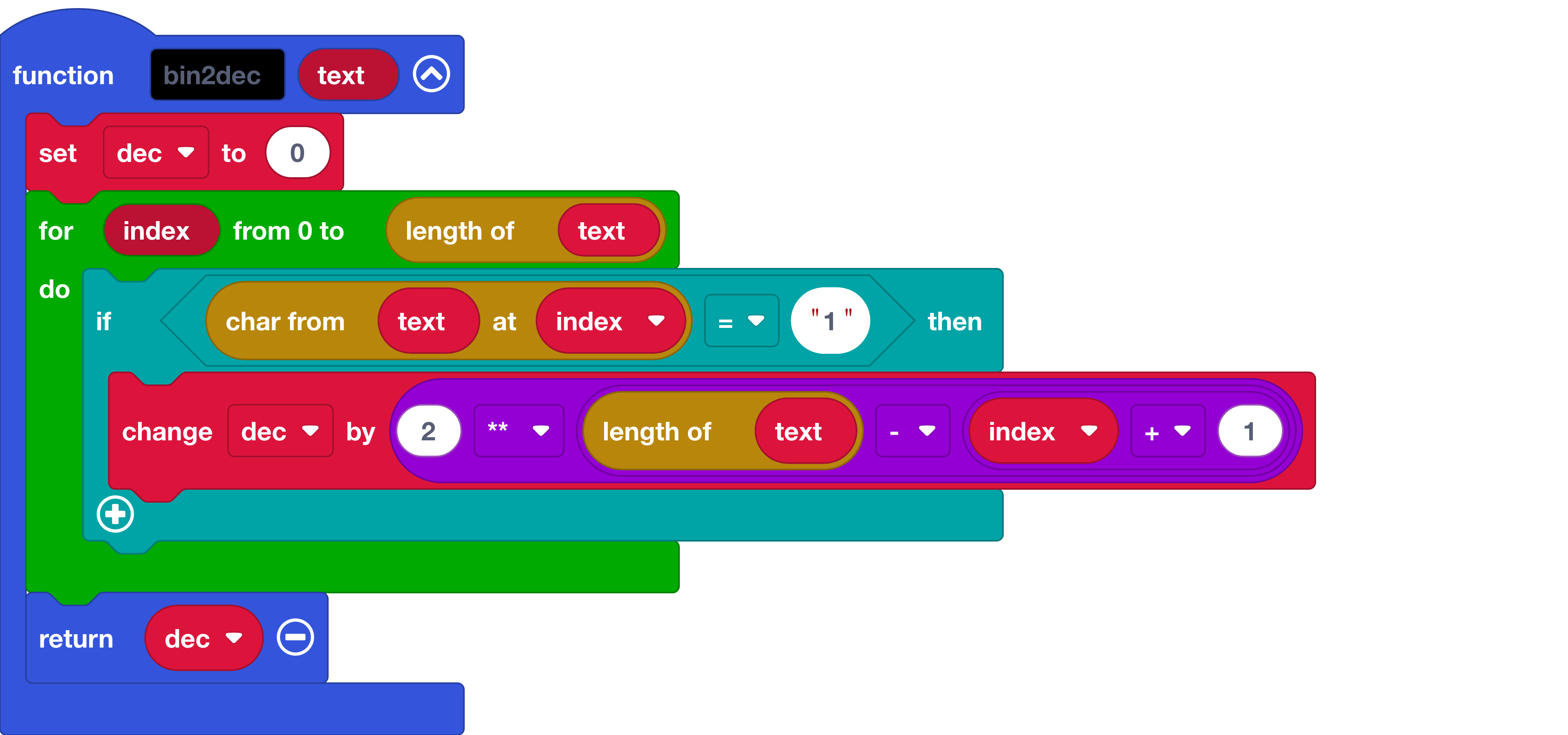 MakeCode function to convert binary to base 10