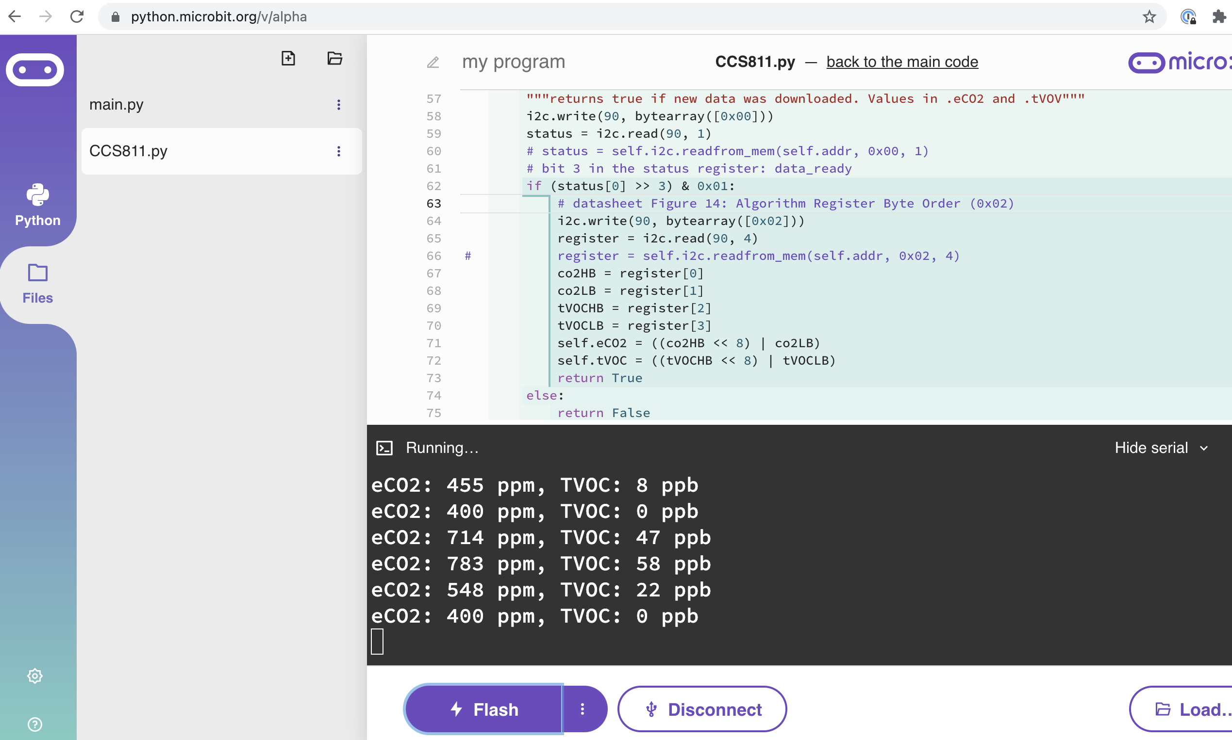 ← CCS811 indoor air quality sensor on a micro:bit