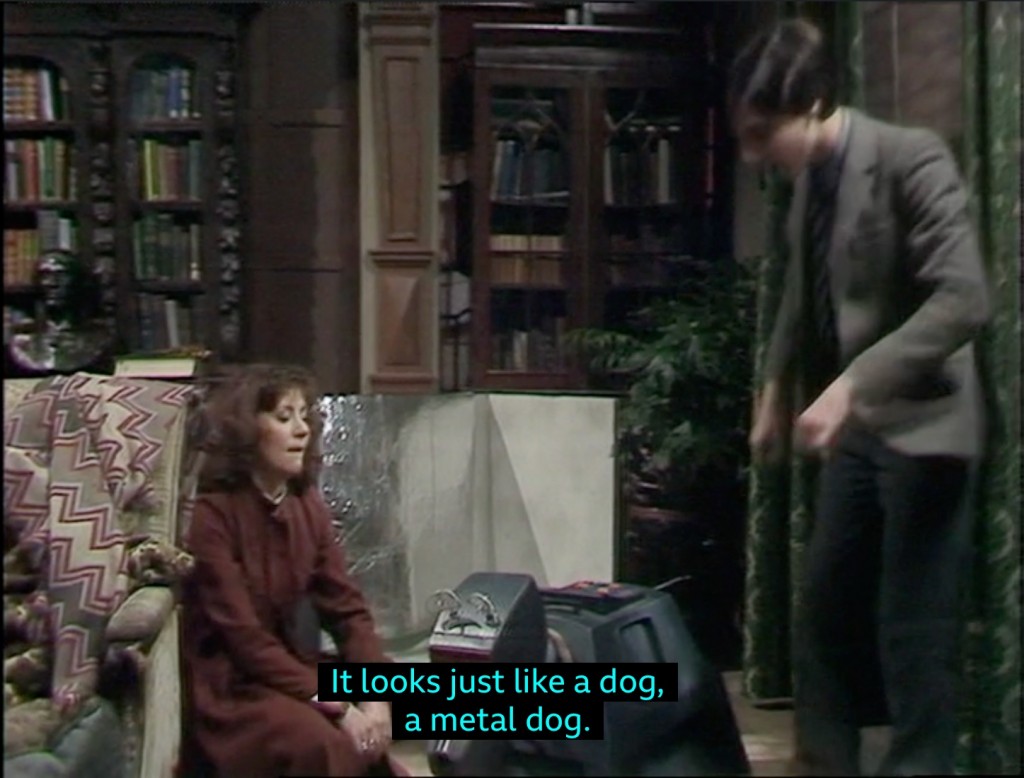Then the show starts. And tonally, we are not in Croydon anymore. We’re not even in Doctor Who, it’s like we’re in something more like a 1970s ATV Thriller, or an episode of Tales of the Unexpected. Sarah Jane has pitched up in her Aunt Lavinia’s massive country house in the Cotswolds. VT interiors, grown-ups talking in grown-up ways in drawing rooms. Juno Baker looks like she has pampas grass in her front garden. The pace is slow. The whole thing feels a bit dated even for 1981, and it certainly does not feel like a show made for children.