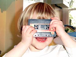 cassette machine and shoeboxes full of tapes that I'd