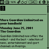 A page on this very web site viewed on a Palm m125 in Plucker